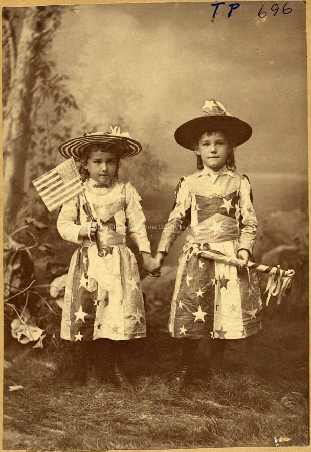 Two unidentified girls dress in patriotic costumes July 4, 1891. Type: Paper