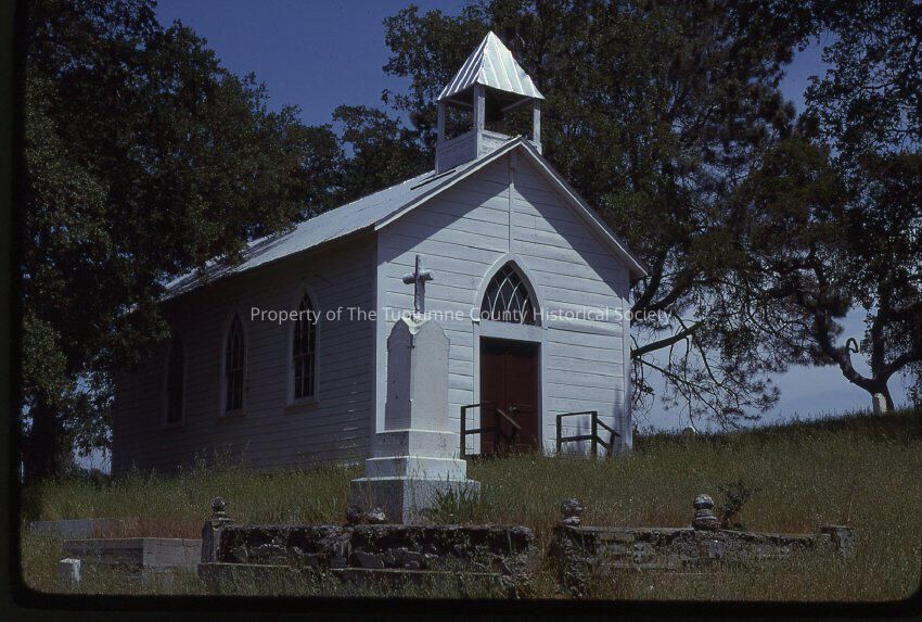 St. Francis Xavier Church, Chinese Camp. Built in 1855, by Irishmen who left Ireland because of the potato famine for the gold fields of California. It was first restored in 1949, and recently (1970's early 1980's) undergone a lot of renovation.Collection