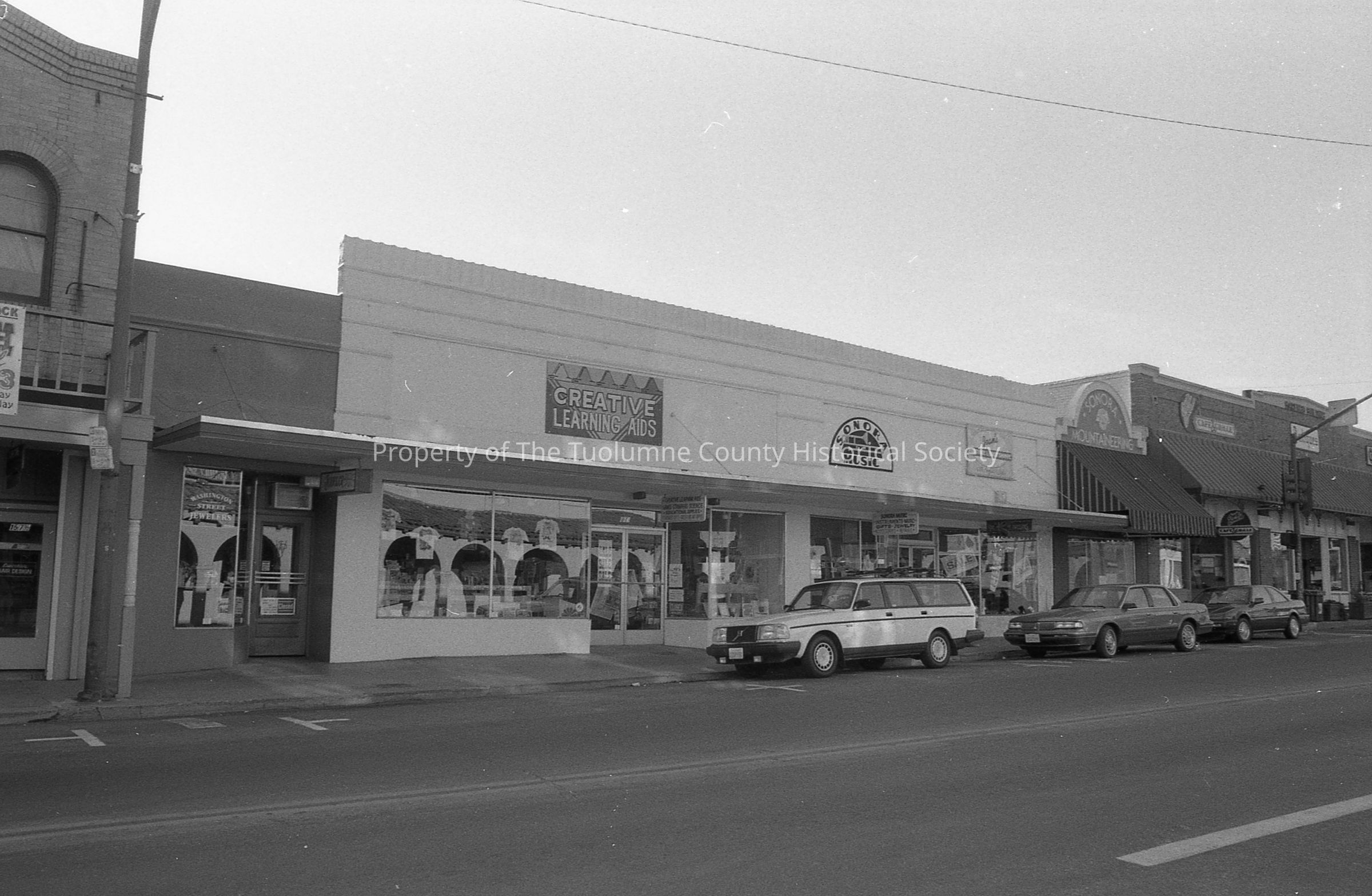 Washington St. Jewelers (161), Creative Learning Aids ((163), Sonora Music (165), Joan's Boutique (167), and Sonora Mountaineering (173) on S. Washington St. 1994Collection