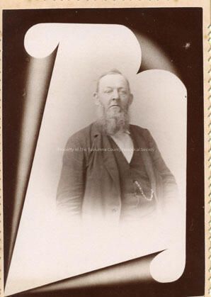 A black and white portrait of an unidentified elderly man with full beard. Wearing suit with vest and a watch chain . Photo from Album #2