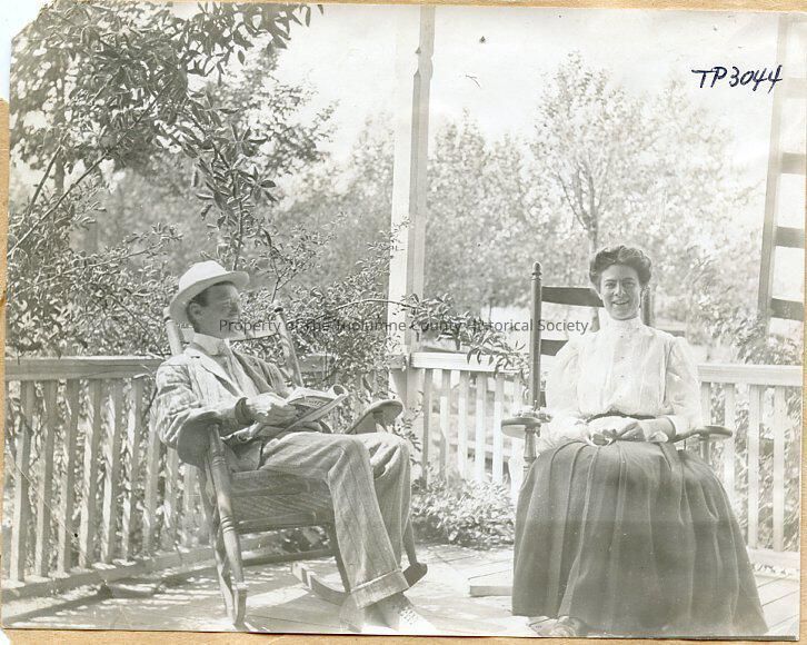 Photography, Unidentified Man, Unidentified Lady, Man And Lady In Rocking Chairs, Sitting On Porch, Turnback Inn