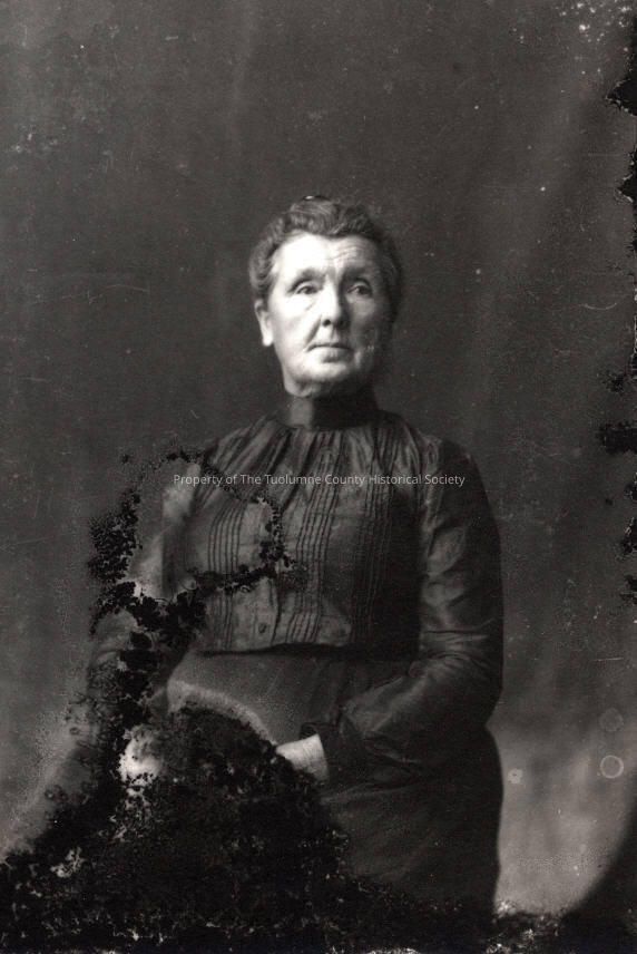 A 4" x 6" black and white photo of an unidentified lady wearing a black high collar blouse and black skirt.