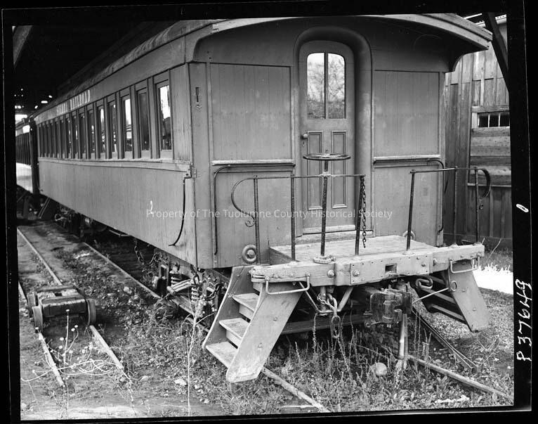 Negative for photo TP17668. Sierra RR according to "A Railroad Transplant, The Sierra Railway Company of California" by Richard Rosenquist dated 1988, the Sierra RR coach #2 was a combination coach during its life with the Sierra RR and was sold to the United Commercial Co. in 1925.