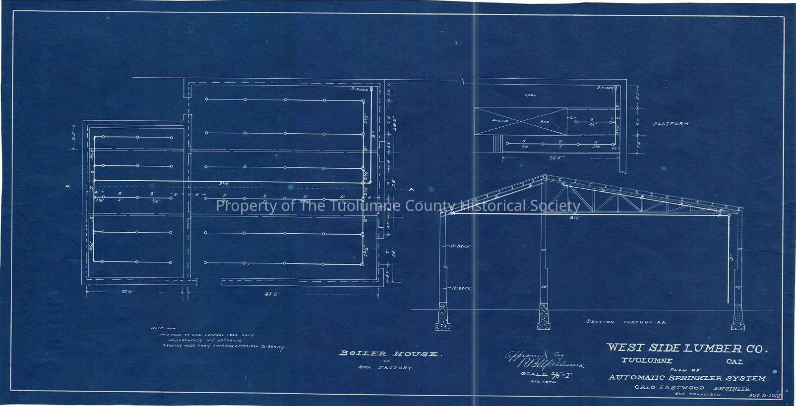 blueprint of sprinlklers boiler house to box factory, blueprint, sprinklers, boiler house, box factory, American Appraisal Co., plans for automatic sprinkler system for boiler house to box factory