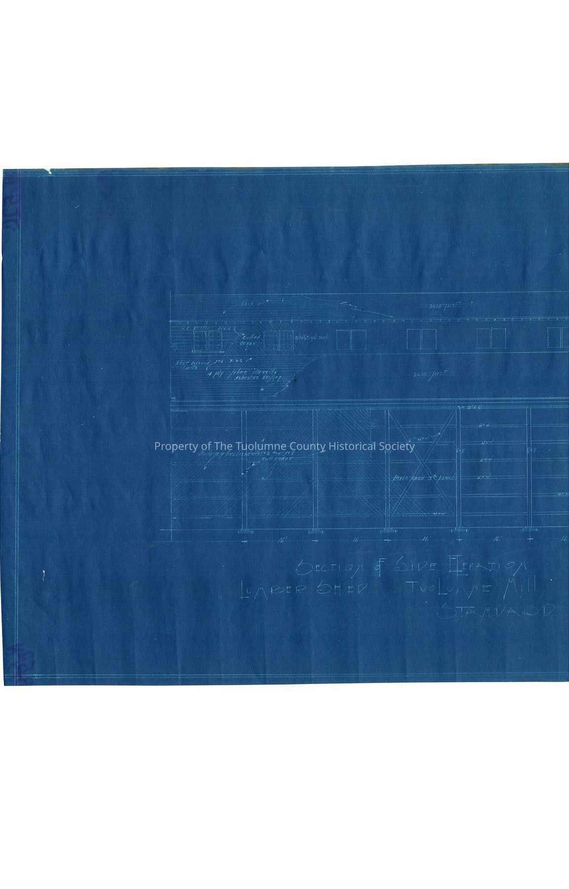 Section of Side Elevation Lumber Shed Tuolumne Mill Standard