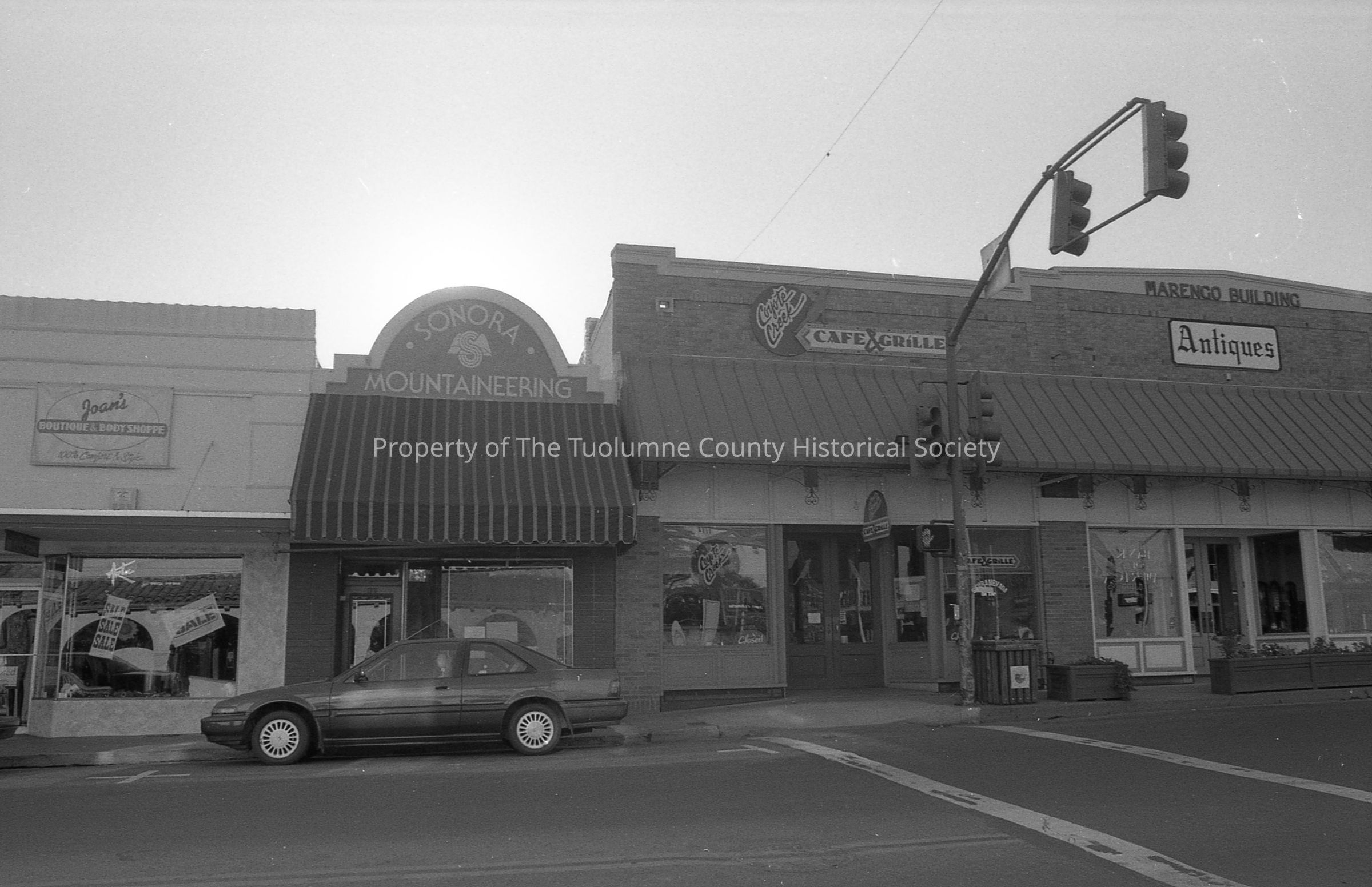 Joan's Boutique (167), Sonora Mountaineering ( 173), Coyote Creek Café & Grill (177), Antiques (177) on S. Washington St. 1994Collection