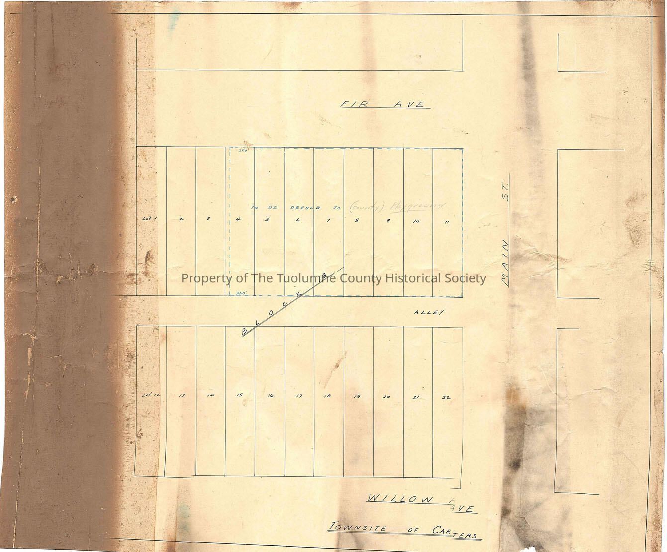 pen and ink rendering of Block 18, Carters, to include Fir, Main and Willow streets