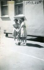 ALBUM WITH 56 PHOTOS OF YOUNG PEOPLE, MOSTLY RIDING HORSES. ONLY ONE PHOTO, #13,236 HAD"(SANDRELD BLITZ)" WRITTEN ON TOP OF PHOTO. NO OTHERS IDENTIFIED. PHOTO ALBUM 5 1/2" X 8 1/2". PHOTO ALBUM WAS AMONG PHOTOS OF FUTURE FARMERS OF AMERICA. PHOTO SHOWS THREE UNIDENTIFIED YOUNG LADIES STAND OUTSIDE IN FROM OF A BUILDING.
