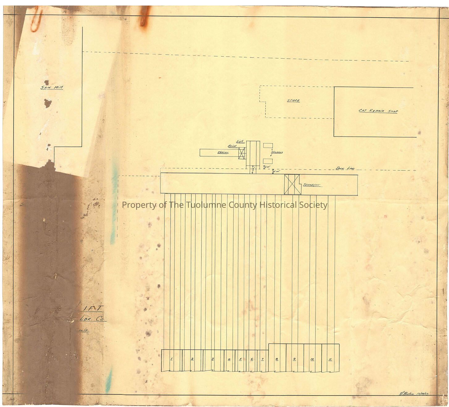 pen-and-ink prepared by Art Ronten--kiln area and lumber lift location