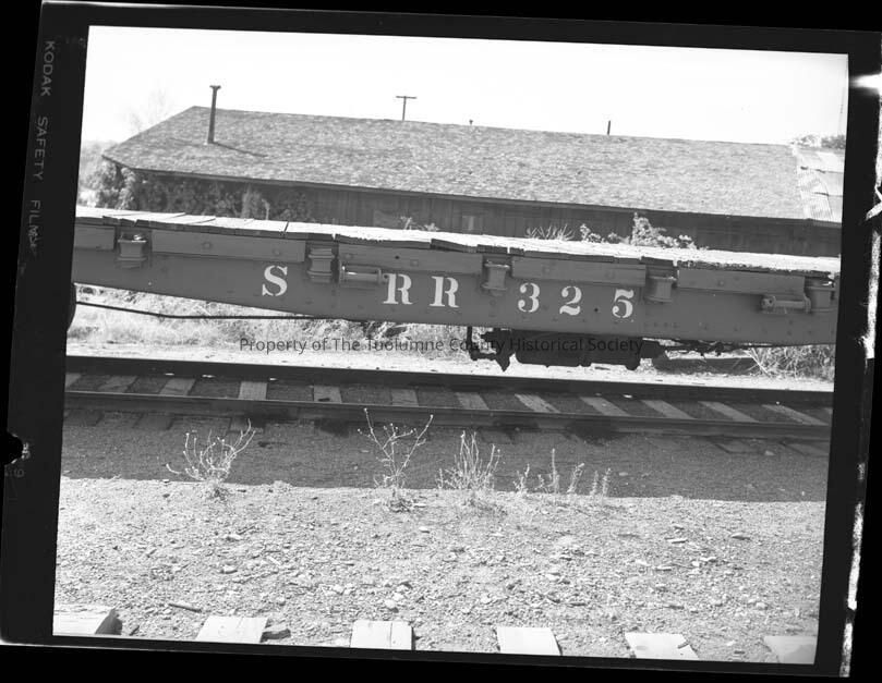 Sierra Railroad. This is a photo negative for TP17713, of flatcar 325. It appears to have been located at the Jamestown yard. According to "A Railroad Transplant, The Sierra Railway Company of California" by Richard Rosenquist this car formerly was Southern Pacific box car #20838 which was wrecked May 1922.Collection