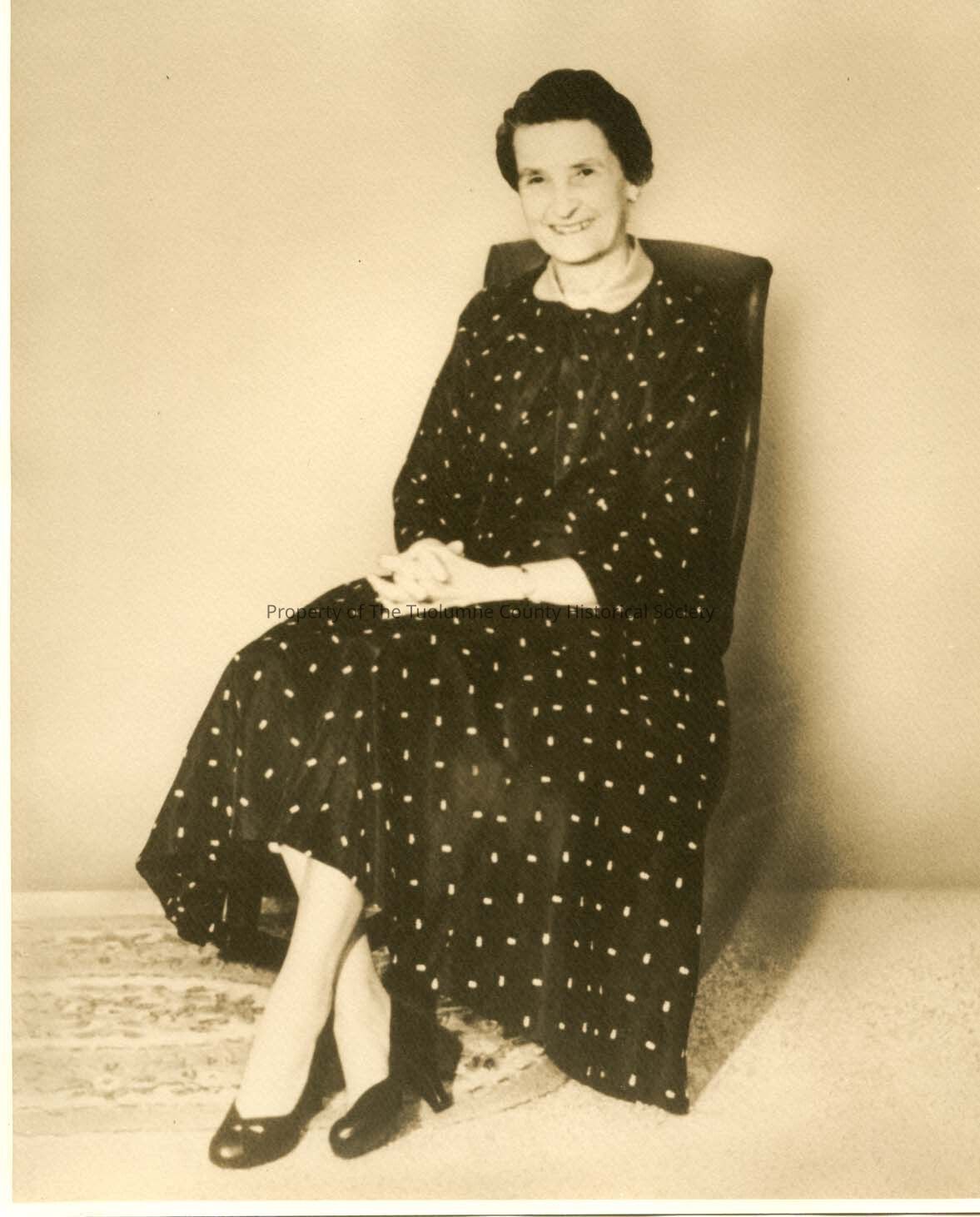 Donor - Photography House 1988, Lady sitting dressed in a black and white polka dot dress, Biography unidentified woman