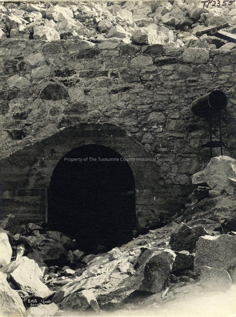 Landscape - Relief dam site. Rock wall construction of the opening of a tunnel at Relief dam. Type: Paper