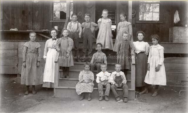 Miss Ida Hill was the teacher at the Phoenix Lake School in the early 1900's and she can be seen standing to the left of the photo with her class. The other teacher standing to the right is unknown.Collection