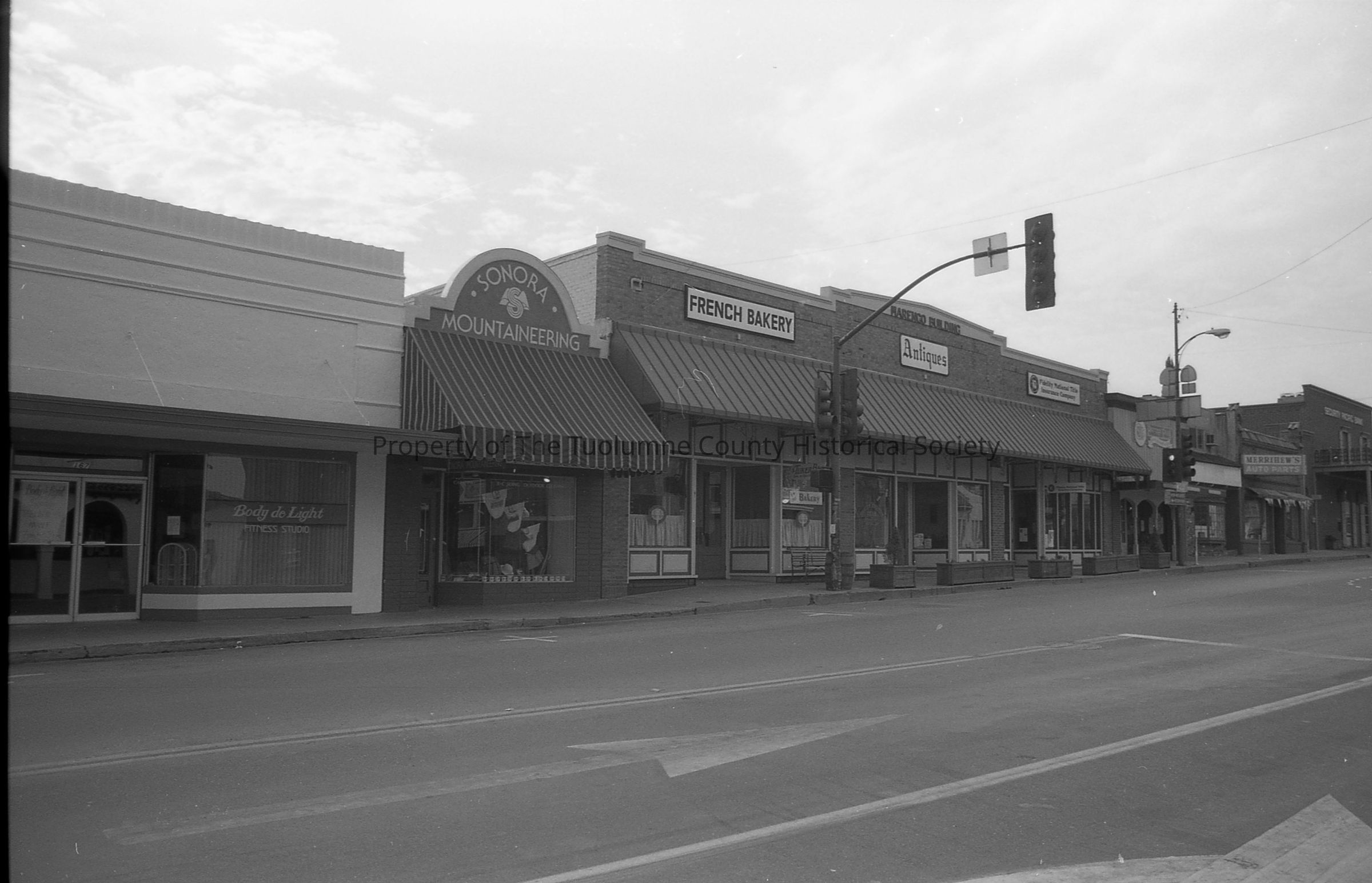 173, 177, 181, 185 S. Washington St., Sonora Mountaineering, French Bakery, Antiques, Fidelity National Title. (2 photos)