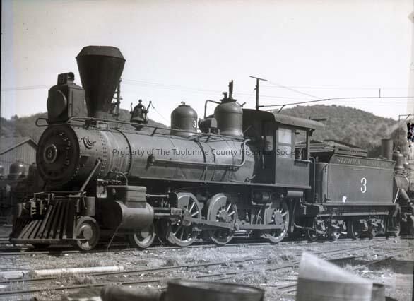 Update, per visitor: Sierra RR #3, in process of being cosmetically altered for Paramount Pictures "The Virginian." Photo taken May, 1929.