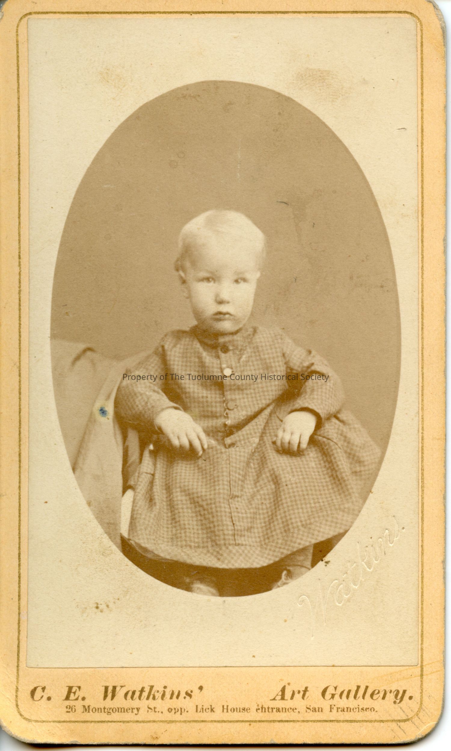 A photograph belonging to the Pedro family collection given to the Grand Lodge F. & A. M. of California, Henry W. Coil Library & Museum of Freemasonry by Leslie Woodworth. Photo is most likely a Pedro family member or friend.Subject is a child, wearing a dress with checkered fabric.Collection