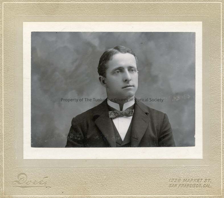 A Black and white portrait of an unidentified man. "W W M ", written on back of photo. Wearing suit with bow tie, dark wavy hair.