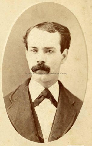 Unidentified man wearing a suit, dress shirt with a wide collar and a bow tie. His hair is parted on the side. He has a large mustache. Hartvig Type: Paper