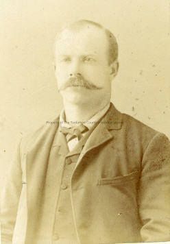 Unidentified man wearing a Suit with vest, dress shirt and bow tie. He has a mustache. His hair is sparse.