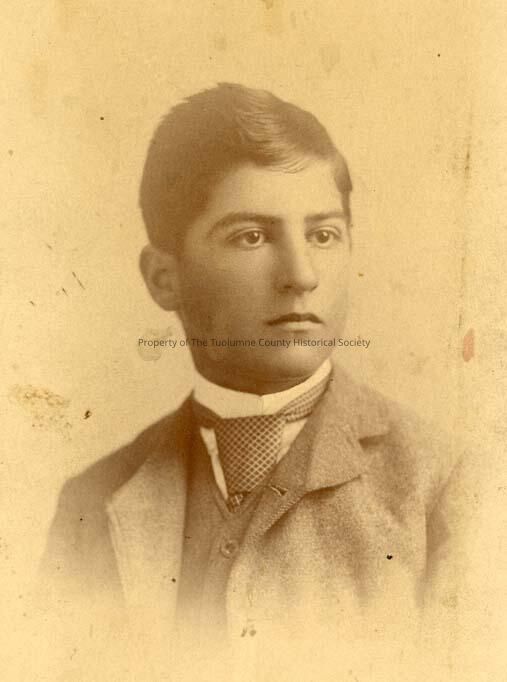 A black and white portrait of an unidentified young man. Wearing 3-piece suit, checked tie.Medium light hair with side part.