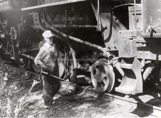 Sierra Railroad Engine #38 with Shorty Maddox oiling aroundEntry/Object ID