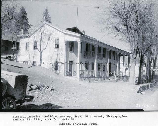 This is a photo from 1934 of the Bisordi Italia Hotel on Washington Street in Sonora, now the Gunn House Hotel.Collection