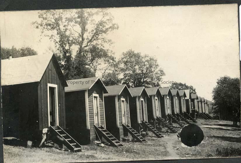 A 3.5" x 7" Black and white photo of the worker's cabins. Workers ate in cook house. First built when Lumber Company moved from Sonora to Standard, California.