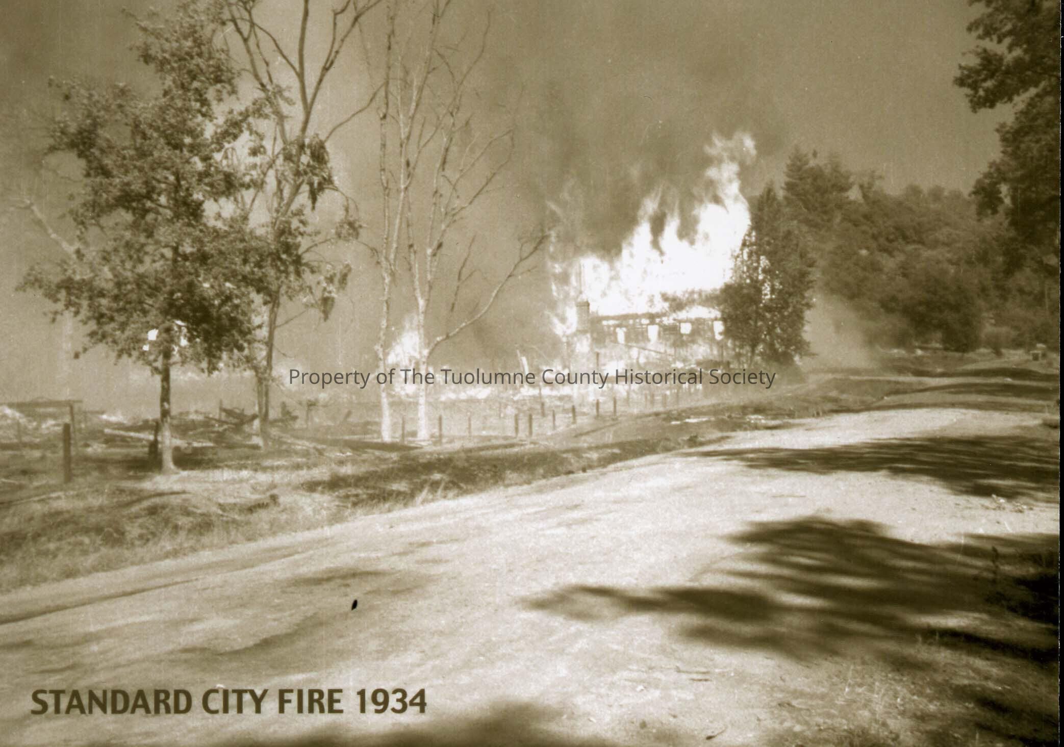A 5" x 7" Black and white photo of the Standard City Fire in1934. Photo shows house engulfed in flames. 1934.