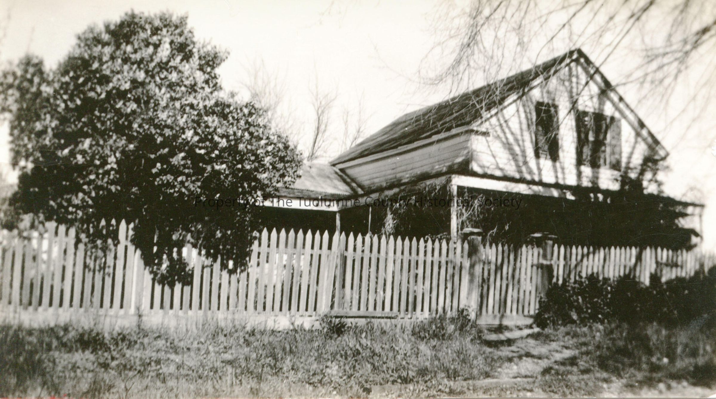 A black and white photo of W.D. Sleeper's residence on the corner of Broadway and Pacific strrets, Columbia, California. Per Sherrin Grout was the Brainard residence/Pensa residence in the 20th century.