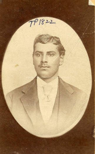 Portrait - Man not identified. Young man with brown hair, mustache, suit with wide lapels and white shirt and tie. Type: Paper