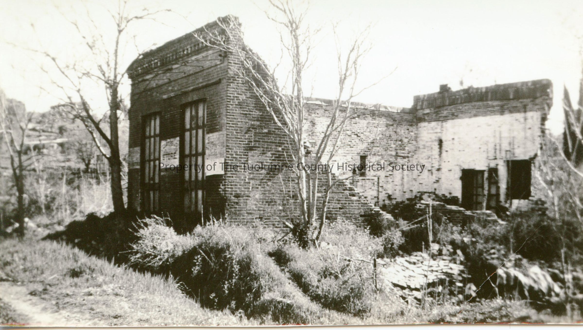 A black and white photo of the China Store, all that remains of a once extensive Chinatown at the end of Main Street in Columbia, aka Claverie-Meysan. On the east side of main street between Jackson and Pacific.