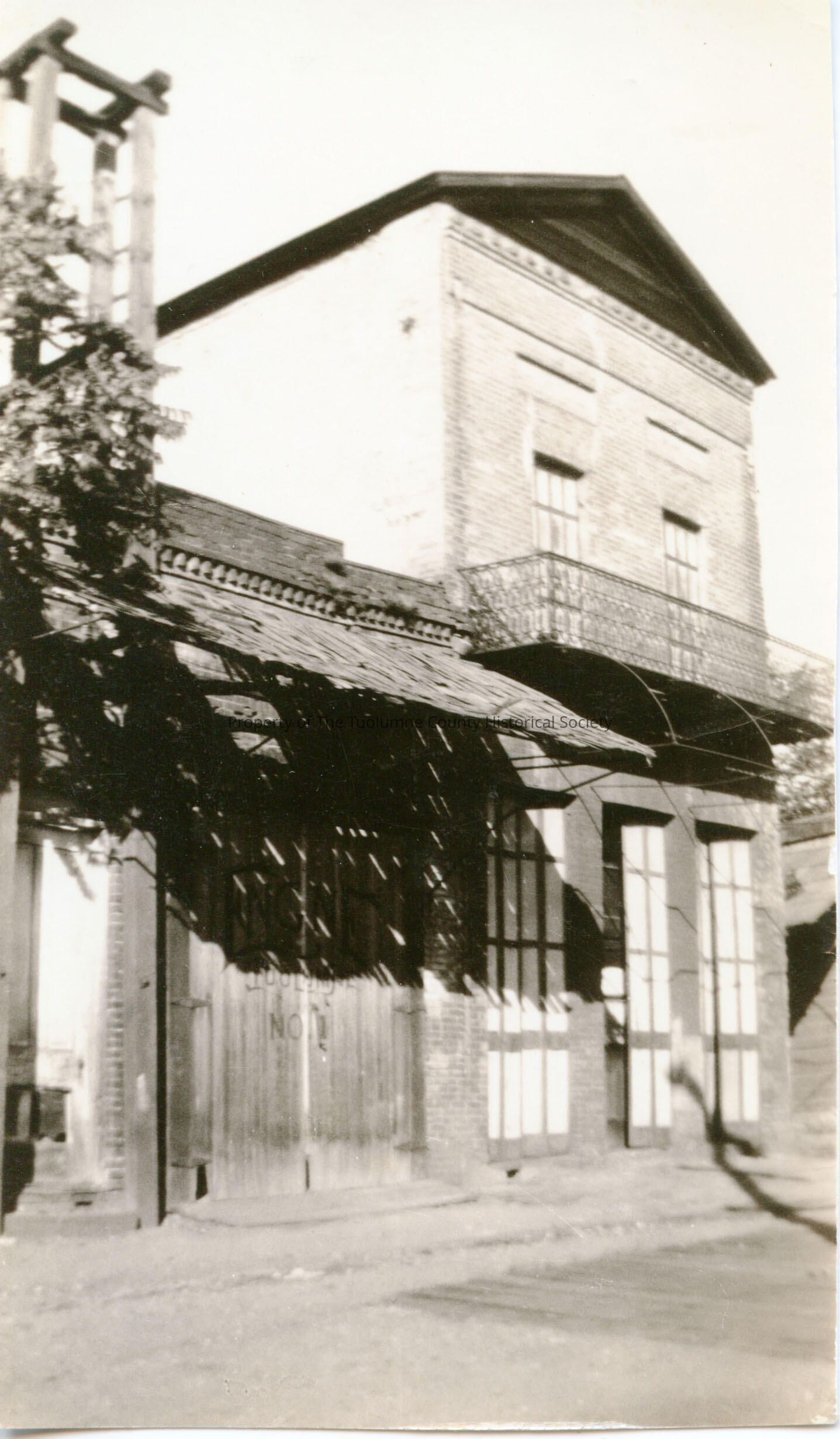 A black and white photo of the building that housed Duchow printing." Office was on upper floor. The main floor was a saloon run by Billy Steinfeller who then sold it to Jim Schooler and it was known as "Springfield Brewery".