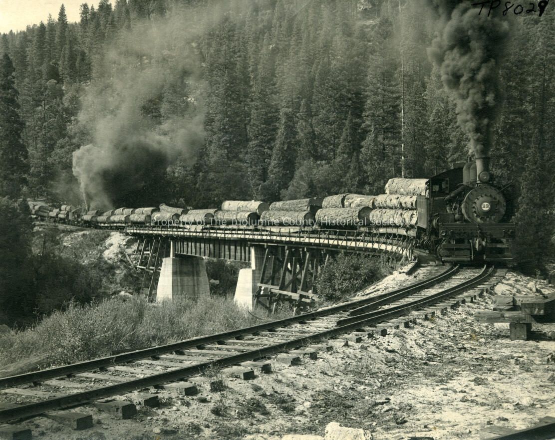 Trains, Places, Lumber Companies, Log train, 1951, Beardsley Flat Trestle, Stanislaus River