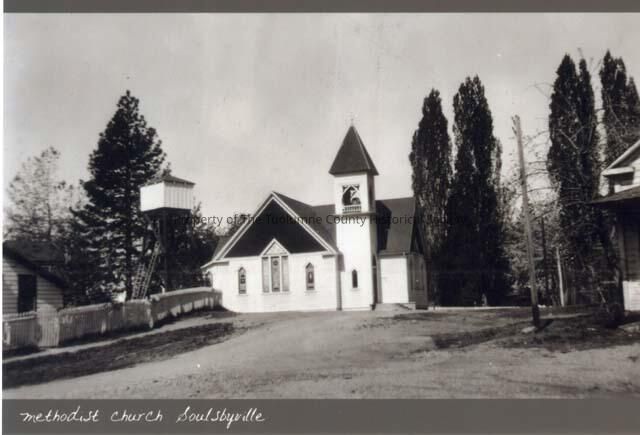 A 5" x 7" Black and white photo of the Methodist Church at Soulsbyville. California.