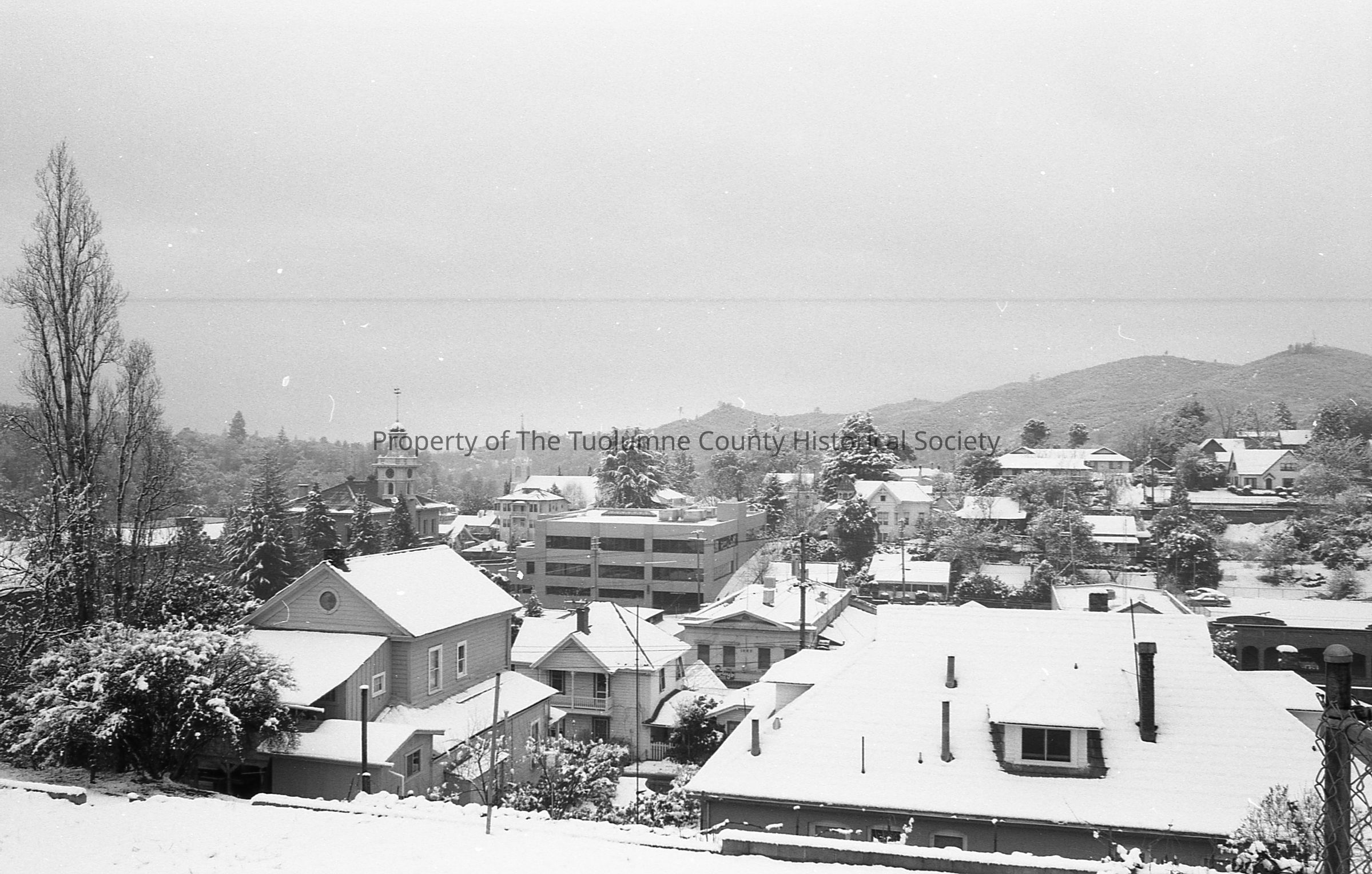 Sonora overview, with snow, from about 92 N Shepherd St. Looking west.