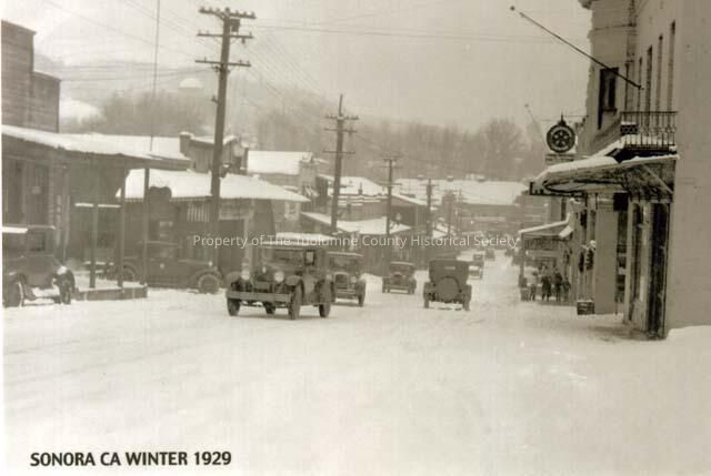 Sonora, Winter scene, 1929, Washington street, snow covered