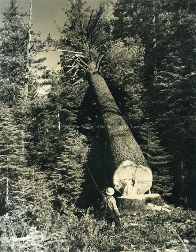 "King of the Pines." A sugar pine falling to earth as a lumber jack looks on. This is a Christmas card from the Pickering Lumber Company to its clients around 1930/1950Collection