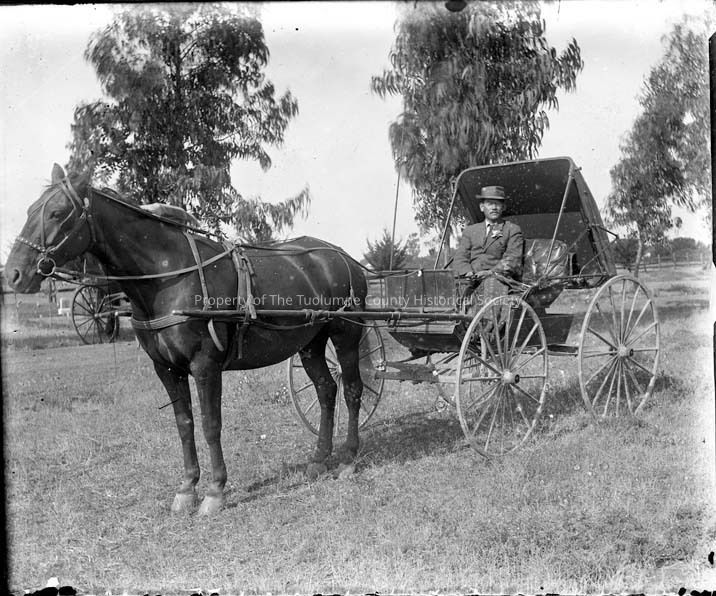 Glass Negative of an unidentified man in a horse and buggy in an unknown location.