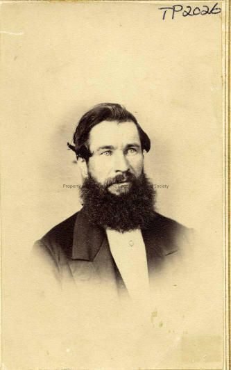 Portrait-Man, in a nice suit and has a large beard. Not identified. Photograph taken at Rulofson’s Studio, Daniel Sewell, Proprietor. Type: Paper