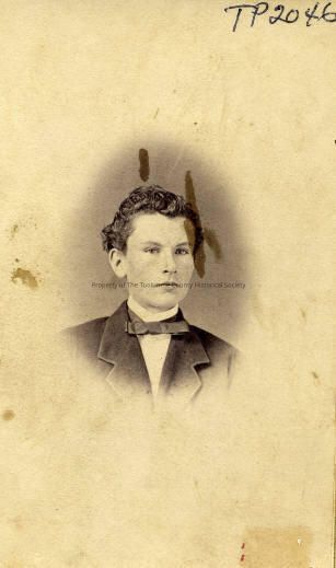 Portrait- young man. With a bow tie. White shirt & collar. Hair parted on side. Rulofson gallery, Sewell, proprietor. Type: Paper