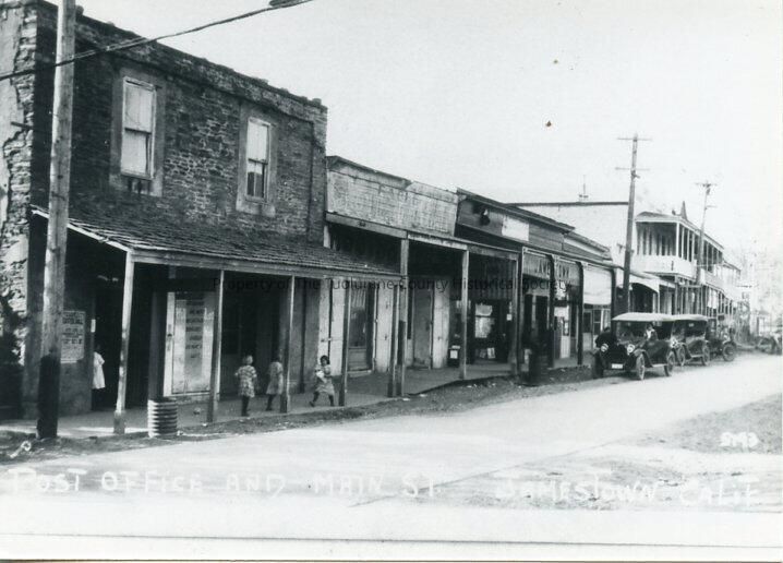 A 3.5" x 4-3/4" Black and white photo of Main Street, Jamestown.