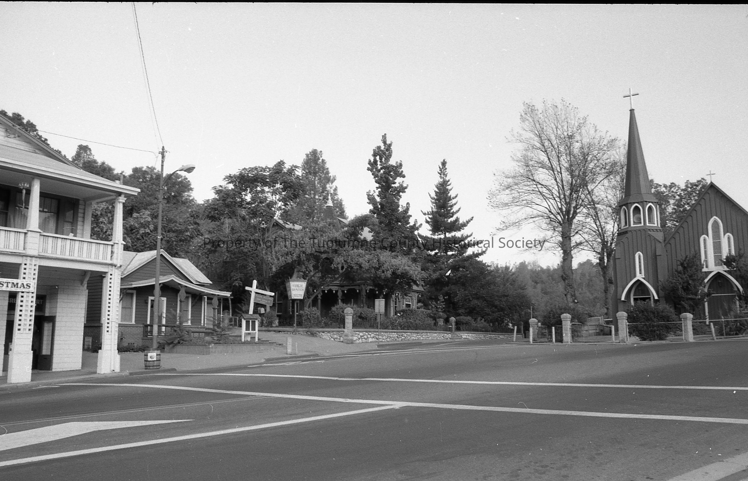 N. Washington St. and Snell St. intersection, showing Virgil Gunter Real Estate, and St. James Episcopal Church (Red Church). 1990Collection