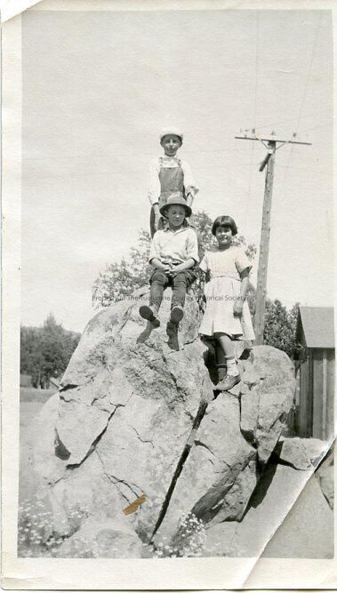Ourdoor Scene, ChildrenUnidentified Children Sitting On Large Rock, Tuolumne, Three Unidentified Children, Photos