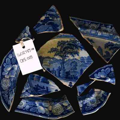 Blue transfer-print pearlware platterCollection