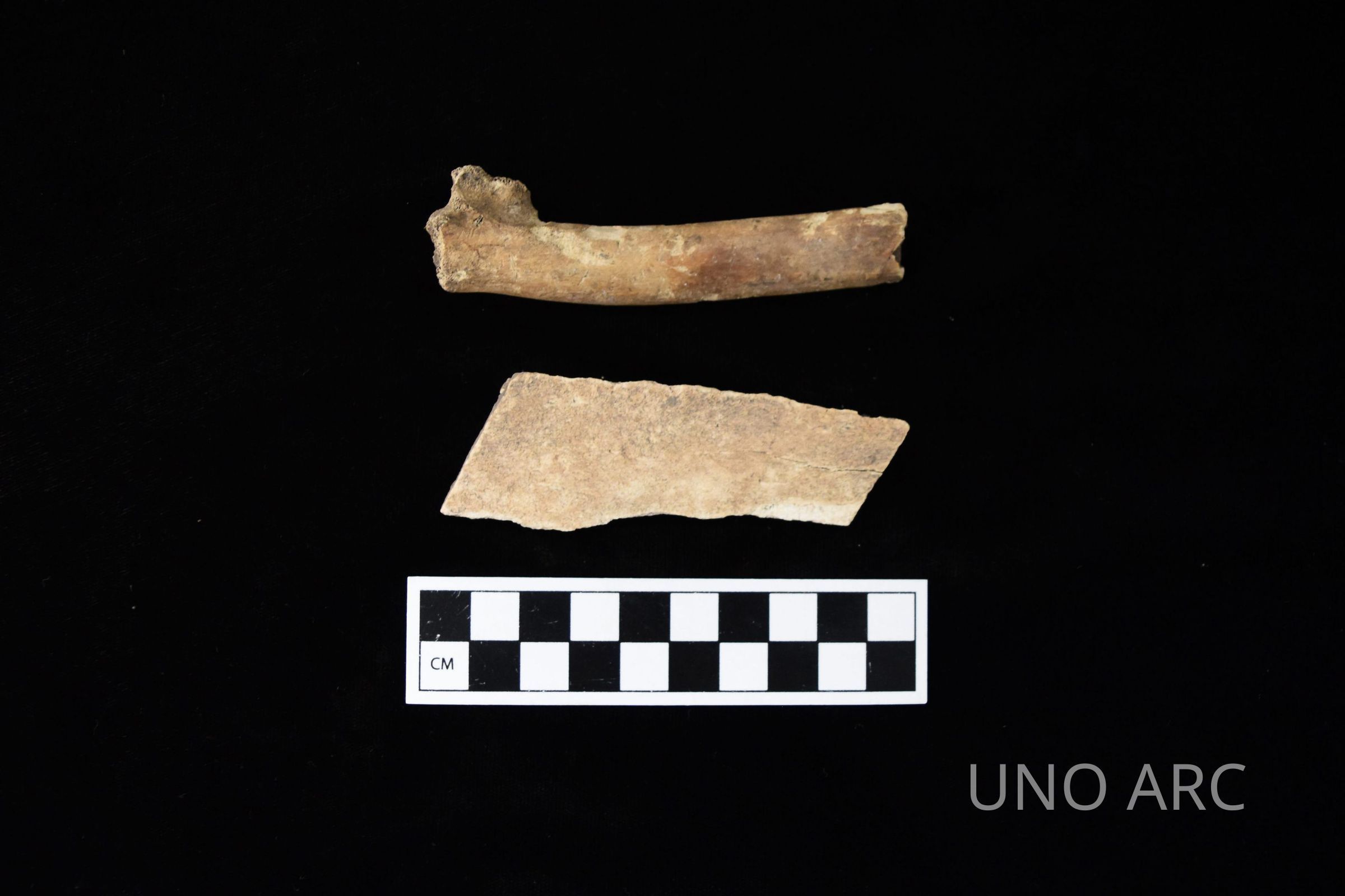These bovine bones are most likely the result of butchering, cooking, or consuming a cow. If large enough, bovine bones could be used to make buttons or toothbrushes. The use of bones in this kind of manufacturing is most popular before WWI.Cataloged By