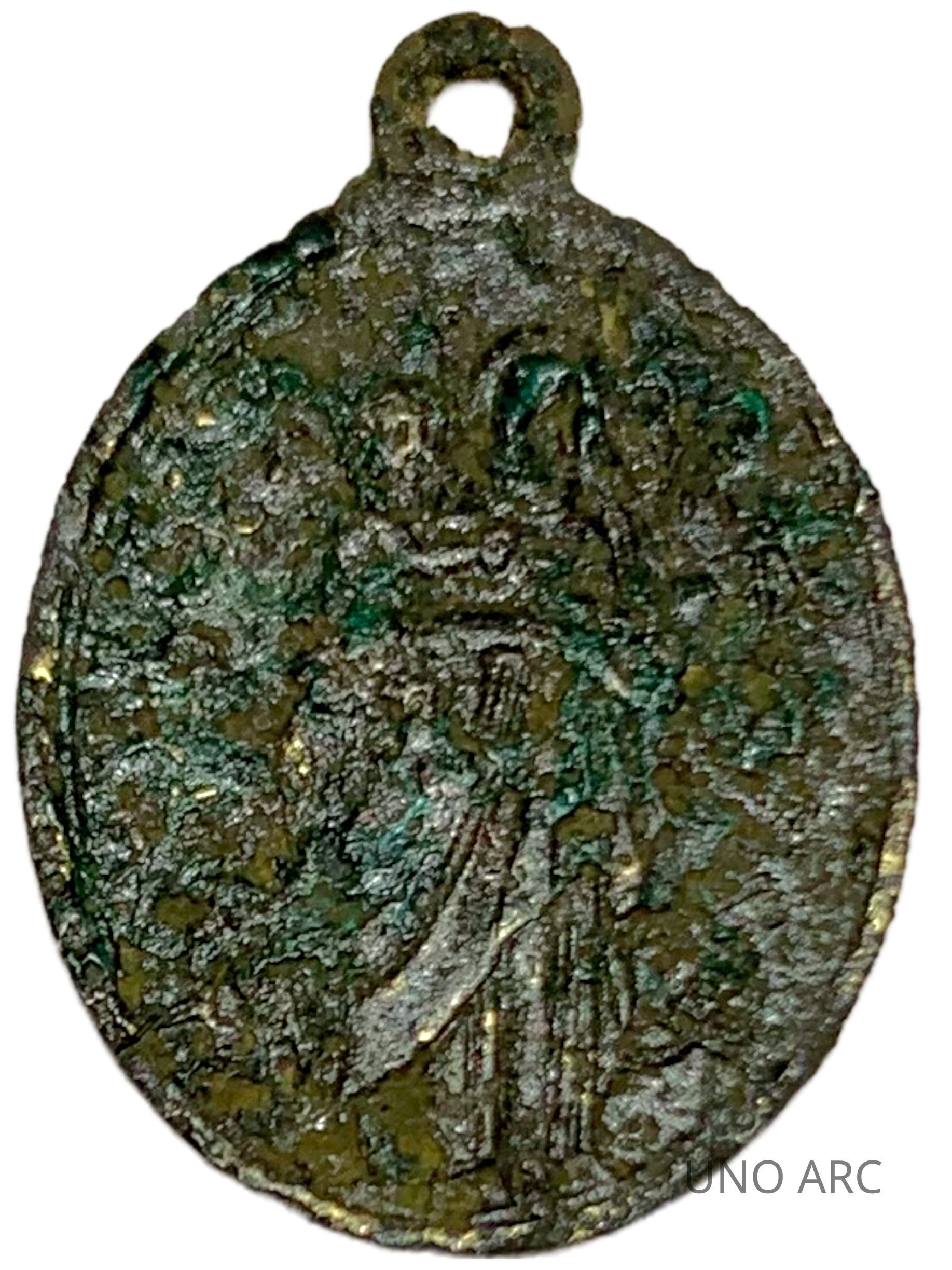 Catholic religious medal possibly depicting the figures of St. Joseph on one side and the Virgin and Child on the reverse.Context