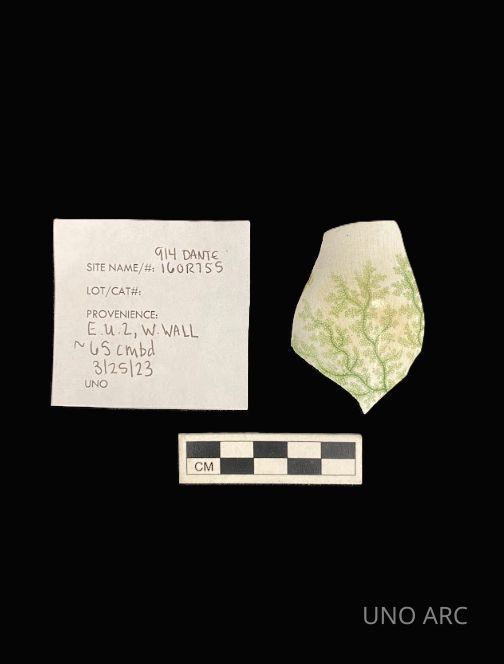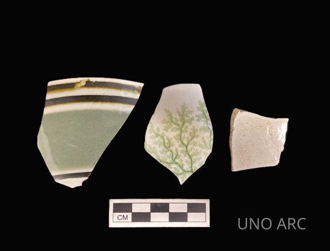 Annularware, Ceramic with Green Transfer printed Design, and Whiteware- need more research on the last 2 sherdsCreated By