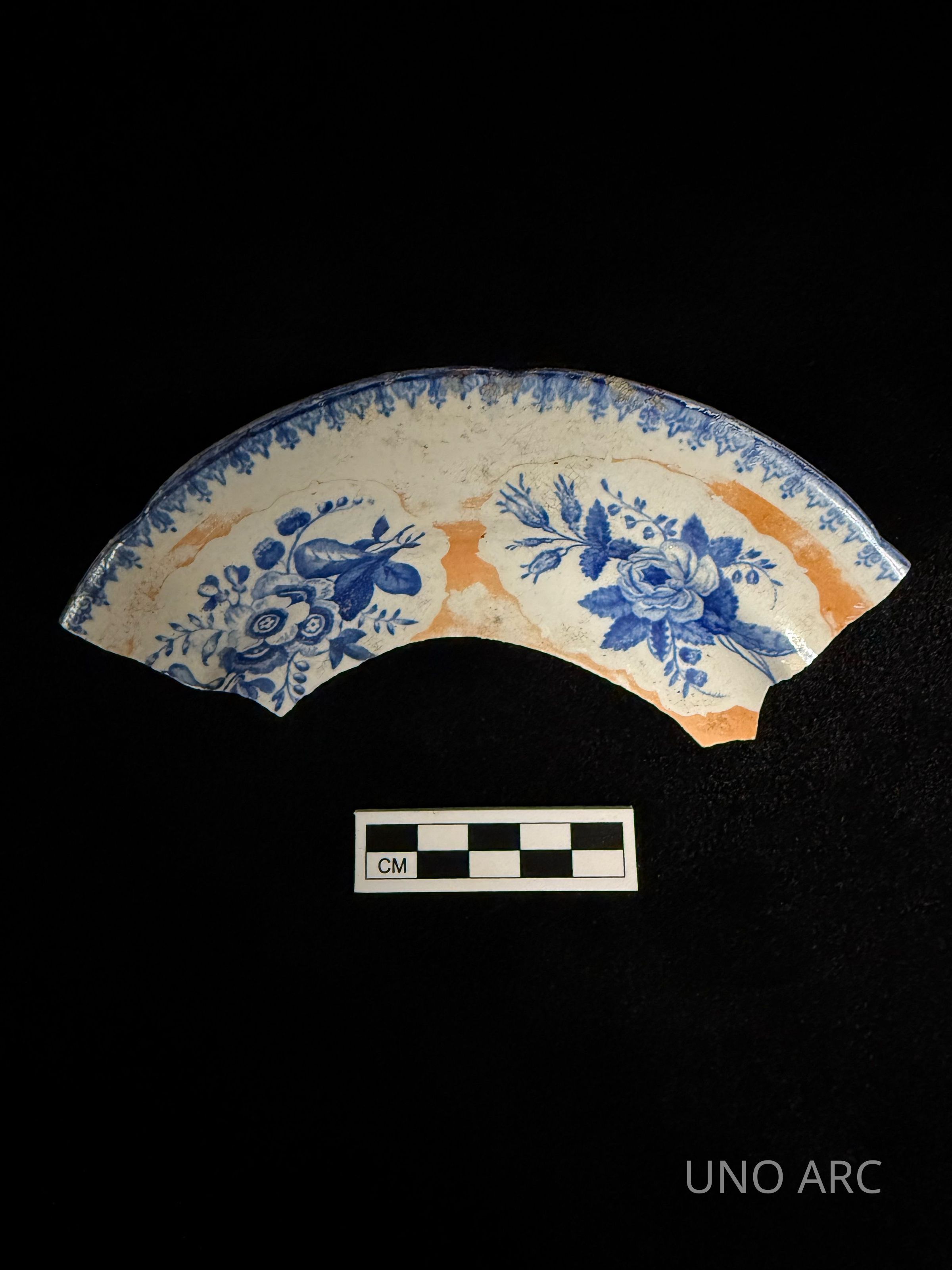 Blue Tansfer-Print Pearlware Plate: Floral Pattern, Orange ColorationContext