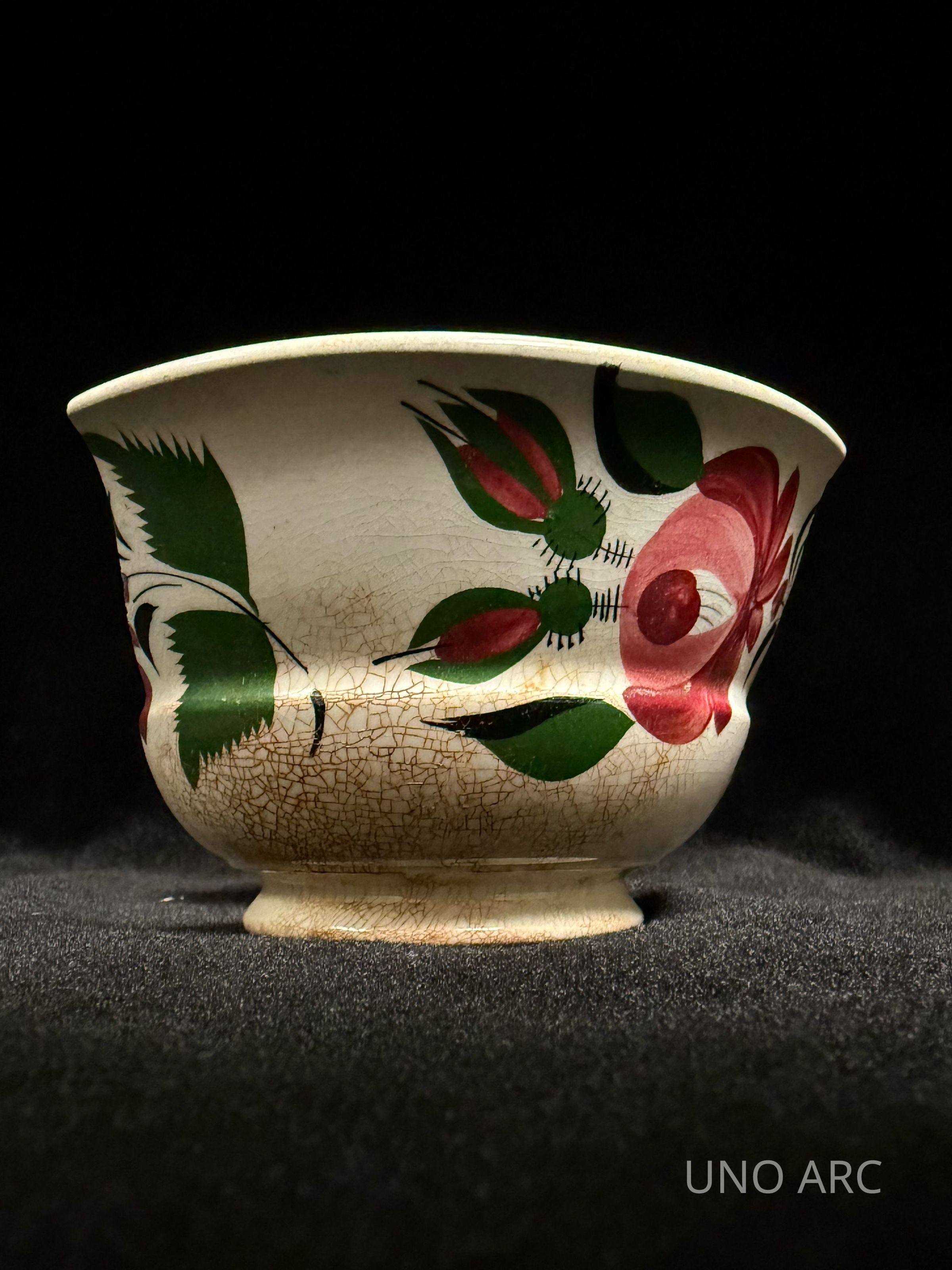 Whiteware Bowl: Hand-Painted Floral Polychrome; Green, Red, and Black Flower; Circular Impression Mark on Base; 12.5cmContext