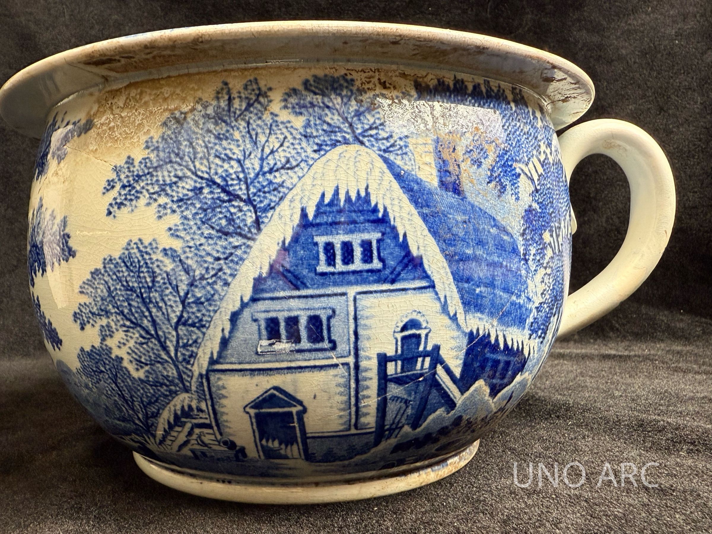 Blue transfer-print chamber pot